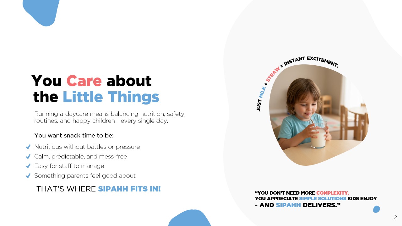 We’d love to show you how Sipahh can help young children happily drink milk while keeping parents confident and routines simple.