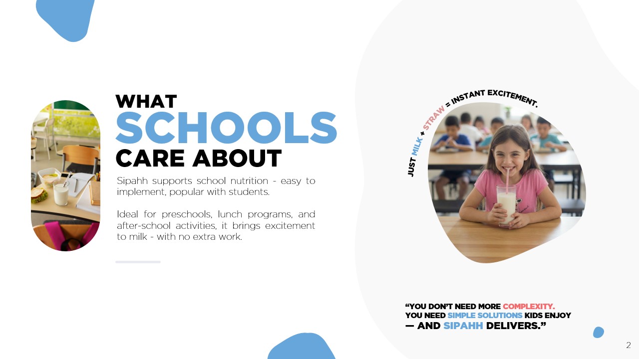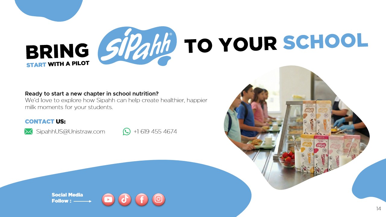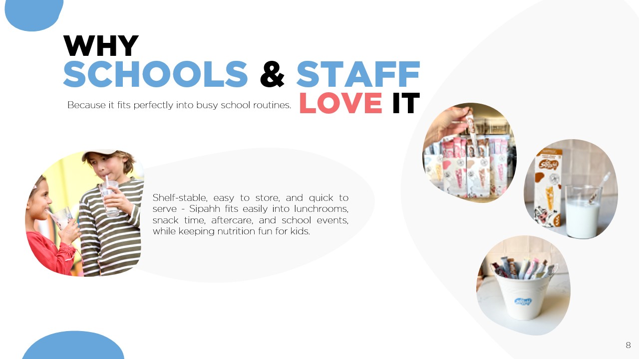 Shelf-stable, easy to store, and quick to serve – Sipahh fits easily into lunchrooms, snack time, aftercare, and school events, while keeping nutrition fun for kids.